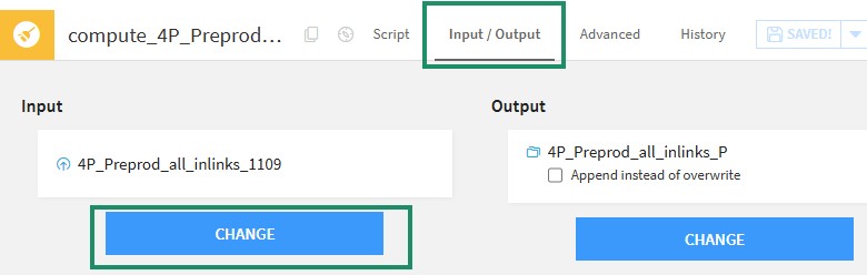 3 – Allez dans l’onglet Input / Output et changez l’Input : remplacez le dataset d’origine par votre nouveau dataset.