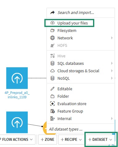 1 – Chargez votre nouveau fichier : bouton Dataset en bas à droite + Upload your files